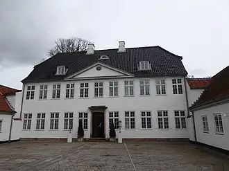 Marienborg, a mid 18th-century country house perched on a small hilltop on the northern shore of Bagsværd Lake, Lyngby-Taarbæk Municipality, 15 kilometres (9.3 mi) north of downtown Copenhagen, has served as the official residence of Denmark's prime minister since 1962. It is frequently used for governmental conferences, summits and other official purposes, including the prime minister's new year speech.[1][2] Unlike the residences of many other heads of government and state (e.g. the White House, 10 Downing Street, La Moncloa and Élysée Palace), Marienborg does not serve as the government headquarters or contain the office of the prime minister. The Prime Minister's Office is instead located in Christiansborg on Slotsholmen in downtown Copenhagen. Marienborg was listed on the Danish registry of protected buildings and places in 1964.