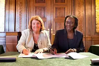 Marietta Brew Appiah-Oppong (born in Tema), is a Ghanaian female legal practitioner, a former Attorney General of Ghana and Minister for Justice.[1] She was appointed by President Mahama in 2013.[2] She is the second woman to hold this office in Ghana, the first being Betty Mould-Iddrisu. Her tenure as attorney general ended on 6 January 2017. She was appointed to the Court of Arbitration of the International Chamber of Commerce from 1 July 2018 for a three-year term.[3] She is Honorary Council Member of the Ghana Association of Restructuring and Insolvency Advisors (GARIA).[4]