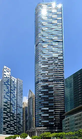Marina Bay Suites is a condominium in Marina Bay, Singapore. It is one of six towers of the Marina Bay Financial Centre. It was developed by Keppel Land, Cheung Kong Holdings and Hongkong Land.[1] It stands at 227 metres (745 ft), with 66 floors, making it Singapore's 14th tallest tower. It consists of 108 three-bedroom units (1,572 square feet (146.0 m2) to 1,604 square feet (149.0 m2)), 110 four-bedroom units (2,045 square feet (190.0 m2) to 2,695 square feet (250.4 m2)), and three penthouses (4,682 square feet (435.0 m2) to 8,181 square feet (760.0 m2)).[3]