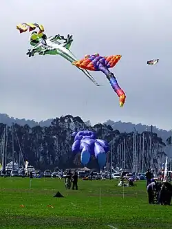 The Marina Green in San Francisco, California, is a 74-acre (300,000 m2) expanse of grass between Fort Mason and the Presidio. It is adjacent to San Francisco Bay, and this location provides good views of the Golden Gate Bridge, Angel Island, Alcatraz Island, and parts of Marin County. Houses built mostly in the 1920s and 1930s line Marina Boulevard, the southern boundary of the Marina Green. Many of these houses have large bay windows, and Herb Caen, the late San Francisco newspaper columnist, often made references to the immaculate furnishings behind these windows. In the past, a railroad track along the southern edge of the Marina Green allowed the San Francisco Belt Railroad to serve the Presidio. Adjacent to the Marina Green is a marina, home to the St. Francis Yacht Club and the Golden Gate Yacht Club. The San Francisco Bay Trail runs through the green.