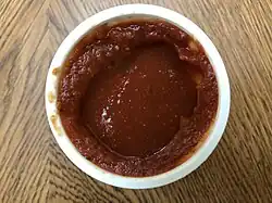 Marinara sauce is a tomato sauce usually made with tomatoes, garlic, herbs, and onions.[1][2] Variations include capers, olives, spices, and a dash of wine.[3][4] Widely used in Italian-American cuisine,[5] it is known as alla marinara ('sailor's style') in its native Italy, where it is typically made with tomatoes, basil, olive oil, garlic, and oregano, but also sometimes with olives, capers, and salted anchovies. It is used for spaghetti and vermicelli, but also with meat or fish.[6]