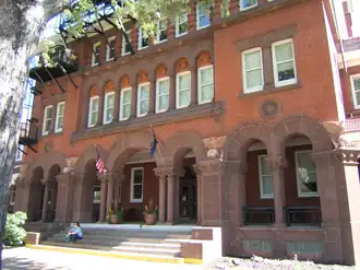 Built by the United States Marine Corps in 1901, this historic structure is a four-story, red brick and gypsum block building. It features a central rounded archway, open porch, and tile roof. It remains occupied by the Marine Corps.[2]
