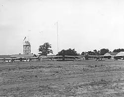 In 1919, a flying field was laid out and the land leased to accommodate a squadron returning from World War I combat in Europe. The facility was later named Brown Field, in memory of 2ndLt Walter Vernon Brown, who lost his life nearby in an aviation accident on 9 June 1921.[9] The present site was selected in 1931, when larger and faster planes brought recognition of the limitations and hazards of Brown Field—its single, crosswind runway, bound by trees, hills, swamp, a high tension line and a railroad.