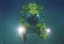 In 1960, the bathyscaphe Trieste descended the furthest point man had yet traveled, bottoming Challenger's Deep at 35,797 feet.[21] The vessel was captained by Jacques Piccard and Don Walsh, whose discoveries while at the bottom of the ocean bolstered scientific discussion and interest about life in the hadal zone.[21][22][23]