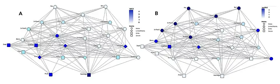 - ^ a b c d e f Endrédi, Anett; Patonai, Katalin; Podani, János; Libralato, Simone; Jordán, Ferenc (2021). "Who is Where in Marine Food Webs? A Trait-Based Analysis of Network Positions". Frontiers in Marine Science. 8. doi:10.3389/fmars.2021.636042. hdl:10831/110681.