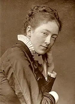 Terry next joined the company at the Haymarket Theatre and became a protege of W. S. Gilbert,[8] soon appearing in several of his plays, including Dan'l Druce, Blacksmith (1876) as Dorothy,[9] The Palace of Truth (1876 revival),[10] Pygmalion and Galatea (1877 revival) and Engaged (1877), creating the role of Belinda Treherne with great success.[2] Also during that period, she first appeared in The Danischeffs, adapted by Lord Newry (1876), Fame by C. M. Rae (1877), Charles XII by James Planché (1877 revival),[11] The Vagabond, by Gilbert (1878),[12] Two Orphans (1878),[13] The Crushed Tragedian,[8] and My Little Girl by Dion Boucicault. In 1879 she moved to the Prince of Wales's Theatre under the management of the Bancrofts and then moved with the company to the Haymarket, performing in revivals of T. W. Robertson's comedies, including as Blanche Haye in Ours and Bella in School. In 1879 she also appeared as Mabel in Duty by James Albert and the title role in Gretchen by Gilbert.[2]