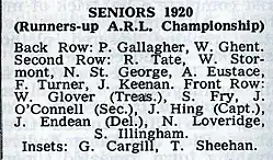 1920 1st Grade (Myers Cup) Marist Old Boys 11 7 1 3 102 79 23 15 3rd of 7
