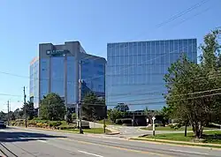 The Maritime Life headquarters was located in Armdale, Nova Scotia (part of Halifax), near the head of the Northwest Arm. After the merger with Manulife Financial, the signage of the building was changed accordingly and the facility became Manulife's central Halifax office.