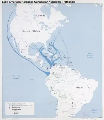Maritime drug trafficking in Latin America is the primary mean of transportation of illegal drugs produced in this region to global consumer markets. Cocaine is the primary illegal drug smuggled through maritime routes because all of its cultivation and production is settled in the Andean region of South America.[1][2]