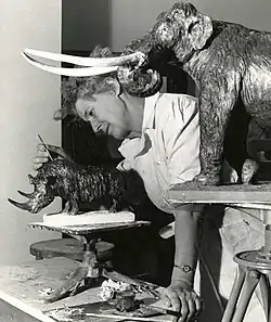 ![]() Marjorie Maitland Howard, pictured around 1958, with her bust of V. Gordon Childe and models created for Frederick Zeuner. | |