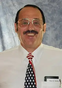 A profile of Gietzen in The Wichita Eagle described him as a "staunch conservative".[14] As Vice Chairman of the Sedgwick County Republican Party, Gietzen became chairman of the party on August 13, 1992, after the resignation of the party chair.[15] Gietzen went on to be elected chairman later in the year.[16] In his role as chairman, he opposed a city sales tax increase,[17] opposed Wichita taxpayer funding of art projects,[17] converted a Democratic stronghold in the state of Kansas to a Republican stronghold,[18] created a solid anti-abortion majority in the Sedgwick County Republican Party,[19] and worked to elect Todd Tiahrt to the United States House of Representatives for Kansas's 4th congressional district.[20] He resigned as chairman on June 10, 1996, to run for the Kansas State Senate.[21] He was also a candidate for the same Kansas State Senate seat (28th district[22]) in 1988 and 1992.[23] In 2004, he lost in a Republican primary for the seat.[24] In 2008, he ran in a primary for the Kansas State House in District 96.[25]