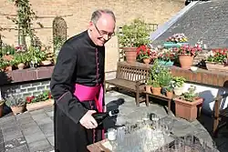 ![]() Monsignor Langham on the Fisher House terrace in 2016 | |