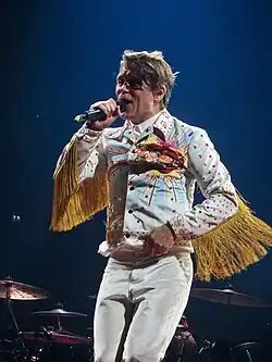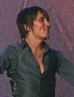 Mark Owen (born 27 January 1972) is an English singer and songwriter best known for being a member of pop group and band Take That; as of 2024, the group have sold 14.4 million albums and 14 million singles in the UK.[2] In Owen's solo career, he has released five studio albums: Green Man (1996), In Your Own Time (2003), How the Mighty Fall (2005), The Art of Doing Nothing (2013) and his most recent, Land of Dreams, which was released in September 2022 and debuted at number 5 on the UK Official Albums Chart.[3]