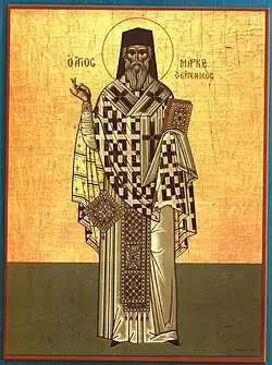 Mark of Ephesus (Greek: Μᾶρκος ὁ Ἐφέσιος, born Manuel Eugenikos) was a hesychast theologian of the late Palaiologan period of the Byzantine Empire who became famous for his rejection of the Council of Ferrara–Florence (1438–1439). As a monk in Constantinople, Mark was a prolific hymnographer[1] and a follower of Gregory Palamas' theological views. As a theologian and a scholar, he was instrumental in the preparations for the Council of Ferrara–Florence, and as Metropolitan of Ephesus and delegate for the Patriarch of Alexandria, he was one of the most important voices at the synod. After renouncing the council as a lost cause, Mark became the leader of the Orthodox opposition to the Union of Florence, thus sealing his reputation as a defender of Eastern Orthodoxy and pillar of the Eastern Orthodox Church.
