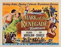 Mark of the Renegade is a 1951 American Adventure Western film directed by Hugo Fregonese starring Ricardo Montalbán and Cyd Charisse.[1] The film is based on the 1939 novel Don Renegade by Johnston McCulley, and is set in Mexican-ruled Los Angeles in the 1820s.