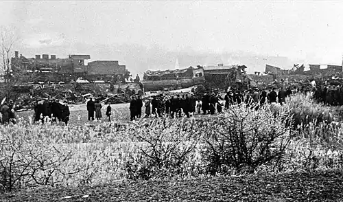 The ringing bell caused the deputy to remember the passenger train, the deputy ran onto the platform to stop the goods train, but the locomotive had already passed the station building, he had no means to get attention, lacking any lighting or even his whistle. According to regulations the goods train was supposed to stop regardless if the line ahead was signalled as clear, it did not, and none of the crew on the goods train noticed the deputy. The deputy then attempted to contact the signal box to set the top signal to stop the goods train, this failed as the signalman was at the level crossing 500 metres away awaiting the passing of the goods train.[1]