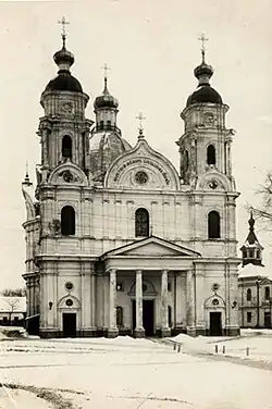 In October 1873, Father Popel issued a special circular ordering the removal of bells, monstrances, confessionals, and side altars from Uniate churches, the introduction of iconostases, the cessation of mentioning the pope, and the administration of Holy Communion only while standing.[17] He supplied Uniate parishes with Orthodox liturgical books printed in Saint Petersburg.[8] The feast of St. Josaphat Kuntsevych and Corpus Christi were removed from the list of holidays celebrated in the diocese.[15] Entire church buildings were being rebuilt in the style typical of Russian ecclesiastical architecture.[15] Due to resistance from the population to these actions, they were carried out with the support of Tsarist troops (significant protests occurred in 29 out of 266 parishes in the diocese).[18] Those opposing the changes were repressed, imprisoned, and exiled to Siberia. In 1874, there were two instances of Russian military aggression against Uniate churches, resulting in fatalities in Pratulin and Drelów.[19] During Father Popel's tenure as administrator, 74 Uniate priests with anti-Orthodox attitudes were exiled or interned, while another 66 fled from Chełm to Galicia.[3]