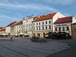 The Market Square in Tarnów, Poland, is a historic market square located at the heart of the Old Town.[1] Established during the city's founding in 1330, it was laid out according to medieval urban planning principles. The square is surrounded by tenements built between the 16th and 19th centuries, with a Renaissance town hall as its central landmark.