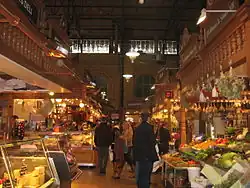 A market hall is a covered space or a building where food and other articles are sold from stalls by independent vendors. A market hall is a type of indoor market and can be found in many European countries. The most common variation of a market hall is a food hall, an area of a department store where food is sold.[1]