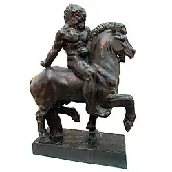Nineteenth-century lithographs of Marko were made by Anastas Jovanović,[77] Ferdo Kikerec[76] and others. Artists who painted Marko during that century include Mina Karadžić,[77] Novak Radonić[78] and Đura Jakšić.[78] Twentieth-century artists include Nadežda Petrović,[79] Mirko Rački,[80] Uroš Predić[81] and Paja Jovanović.[81] A sculpture of Marko on Šarac by Ivan Meštrović was reproduced on a Yugoslavian banknote and stamp.[82] Modern illustrators with Marko as their subject include Alexander Key, Aleksandar Klas, Zuko Džumhur, Vasa Pomorišac and Bane Kerac.[72]