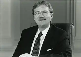 The February 1993 Liechtenstein general election resulted in a win for the Progressive Citizens' Party.[1] As a result, the Fourth Hans Brunhart cabinet was dissolved with Markus Büchel succeeding Hans Brunhart as Prime Minister of Liechtenstein.[2][3] Cornelia Gassner became the first female government councillor in this cabinet.[4]