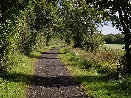 Marlands Works was a busy industrial site for just over a century,[2] firstly on the Torrington and Marland Railway,[3] built to carry bricks and clay on a gauge of 3 ft (914 mm), which in turn was subsumed in 1925 by the North Devon and Cornwall Junction Light Railway[4] before finally becoming part of the Southern Region of British Railways in 1948.[5] The line closed to passenger traffic in 1965[6] as part of the Beeching[7] reforms but the line remained open for freight between Barnstaple railway station and Torrington until 1982.[8] Today it forms part of the popular Tarka trail, although an important site for industrial railway historians[9] too. Marland Works station was used by workmen only and was not in public passenger use.