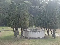 An interdenominational Chapel was added to the hospital in 1962. The Chapel construction budget was $80,000 and came from profits at the hospital snack shop.[44] It was constructed for religious services as well as for counseling. It had offices for the Roman Catholic resident priest, Protestant chaplain and the part-time Episcopal and Jewish chaplains. There was also room for visiting ministers. It was 33 feet high and 64 feet long and large enough to accommodate 80 people for services. It was a one-story red brick building with a pitched roof.[45] The Marlboro Hospital Auxiliary funded the purchase of an organ for the chapel.[46][47] The back edifice held a string of bells suspended vertically. The bells represented the faiths which served religious programs offered at the hospital.[48] In addition to the indoor alter, the building had an outdoor one also to permit larger gatherings, concerts, and other programs.[44]