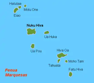 - Nuku Hiva – 339 km2 (131 sq mi), 1,224 m (4,016 ft)