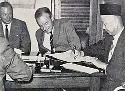 In 1959, Marsal joined the Brunei delegation to London for constitutional negotiations, led by the sultan.[24] He was part of the Brunei delegation at the London Conference on 23 March 1959, where discussions focused on the future constitutional arrangements for Brunei. He attended six plenary sessions, contributing alongside senior officials like Ibrahim Mohammad Jahfar, Pengiran Ali, and legal advisers. The conference aimed to address issues such as the administrative separation of Brunei and Sarawak, with Marsal playing a key role in shaping the discussions.[25] During the First Working Party Session, Marsal voiced his dissatisfaction with the Colonial Office's suggestion of a preliminary training period for the position of chief minister, arguing that enough time had passed for such training and a suitable candidate was ready. Despite his concerns, the Brunei delegation agreed that the appointments of chief minister and state secretary should be discussed privately between the sultan and the Secretary of State for the Colonies, Alan Lennox-Boyd.[26] Marsal later attended the signing of the written constitution and the new agreement with the United Kingdom at the Lapau on 29 September.[27] In November, following Brunei's new constitution, Marsal was appointed an unofficial member of the Executive Council and proposed appointing Brunei Malays to senior government positions. However, when no progress was made, resentment grew towards the influx of Malayan officers, and tensions rose after a LegCo member criticised the lack of opportunities for locals in the public service.[28]