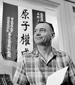 He continued to present and speak on these topics in 1960.[50][51] In 1961 he reinforced his view that exposure to nuclear weapons testing fall out was "no cause for panic."[52] He also stated that the ability to measure radioactive fallout was a recent development, but simply being able to measure it didn't mean that it was significant. He also stated that the genetic effects of exposure to fallout on humans was unknown.[53] He stated that "there is no proof that any distant fallout has ever caused any effect on any person."[54][55][56]