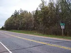 Wood County spans two of Wisconsin's five geographical regions. The northern part of the county is in the Northern Highlands, with mostly rich cropland with heavy clay soil, used for corn, soybeans, hay and dairy.[6] In the northwest corner the Marshfield moraine runs from Marathon County through Marshfield, Bakerville and Nasonville into Clark County.[7] The south and central areas from Babcock through Cranmoor and Wisconsin Rapids are in the Central Plain, flat and marshy - one of the major cranberry-producing centers of the United States.[6] The Wisconsin River cuts across the southeast corner, a corridor of sand flats, islands and oxbows. The river falls about 120 feet as it flows through the county,[8][9] driving several power dams. The remainder of the county is drained by smaller streams and rivers, punctuated by isolated hills like Powers Bluff.