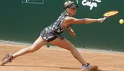 At the start of the clay-court season, at the WTA 500 Stuttgart Grand Prix, she defeated local wildcard Laura Siegemund, and fifth seed Zheng Qinwen, saving five match points to reach the quarterfinals.[37][38] She defeated third seed Coco Gauff on her eighth match point, her first top-3 win, to reach the semifinals.[39] She reached her second WTA 500 final with a straight-sets win over another Grand Slam champion, sixth seed Markéta Vondroušová, her third top-10 win in three days. As a result, she reached a new career-high of No. 21 in the singles rankings.[40][41] She lost the final to Elena Rybakina, in straight sets.[42] She reached the top 20 two weeks later, following the Madrid Open. At the French Open, she reached the second round where she lost to Donna Vekić. In doubles at the same tournament, she reached the semifinals for the first time at this major, partnering again Elena-Gabriela Ruse, with wins over ninth seeds Leylah Fernandez / Erin Routliffe, and then Mirra Andreeva / Vera Zvonareva by walkover.[43]