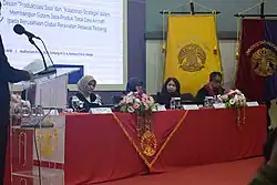 Usman then appointed Martani as his fifth deputy, responsible for institutional affairs and ventures, on 11 October that year.[15] As the deputy rector responsible for institutional affairs and ventures, Martani oversaw cooperation between the university and the Harvard University[16] and launching of the university's public television.[17] He also established the Daya Makara company, a company owned by the university, and became its president director.[4] He later assumed office as member of the Indonesian Broadcasting Commission.[18] In 2005, the university's administration was streamlined, and the office of the third, fourth, and fifth deputy rector were abolished.[19]