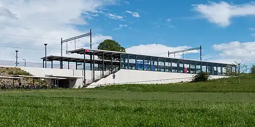 Marthalen is a railway station in the municipality of Marthalen in the canton of Zurich, Switzerland. It is located on the Rheinfall line, within fare zone 115 of the Zürcher Verkehrsverbund (ZVV).[2] The station was moved to its current location in 2014.[3]