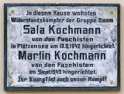 Sala and Martin Kochmann were an early members of the Baum Group, an anti-Nazi resistance group founded by Herbert Baum. The group printed and distributed anti-Nazi literature and organized activities. Martin Kochmann was friends with Herbert Baum since childhood.[2]
