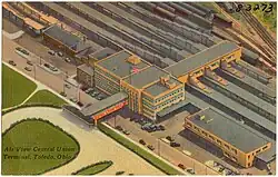 Considered one of the last of the New York Central Railroad's (NYC) great stations, the Central Union Terminal opened the week of September 17, 1950.[5] It was the $5 million crown jewel of the railroad's post-war investment in Toledo, a project that also built eight other buildings and, with the Baltimore and Ohio Railroad, replaced a coal-loading facility in East Toledo with a larger $18.5 million one in Maumee Bay.