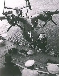 The first PBM-1s entered service with Patrol Squadron Fifty-Five (VP-55) of the United States Navy on 1 September 1940.[5] Prior to the entry of the United States into World War II in December 1941, PBMs were used (together with PBYs) to carry out Neutrality Patrols in the Atlantic, including operations from Iceland. Following Japan's attack on Pearl Harbor, PBMs were used on anti-submarine patrols, sinking their first German U-boat, U-158, on 30 June 1942.[7] PBMs were responsible, wholly or in part, for sinking a total of ten U-boats during World War II.[7] PBMs were also heavily used in the Pacific War, operating from bases at Saipan, Okinawa, Iwo Jima, and the South West Pacific.[8]