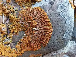 - ^ Fedorenko, Natalya M.; Stenroos, Soili; Thell, Arne; Kärnefelt, Ingvar; Elix, John A.; Hur, Jae-Seoun; Kondratyuk, Sergij Y. (2012). "Molecular phylogeny of xanthorioid lichens (Teloschistaceae, Ascomycota), with notes on their morphology". In Kärnefelt, Ingvar; Seaward, Mark R.D.; Thell, Arne (eds.). Systematics, biodiversity and ecology of lichens. Bibliotheca Lichenologica. Vol. 108. pp. 45–64. ISBN 978-3-443-58087-2.