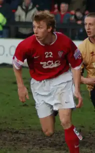 He had a trial with Stockport County of League Two during their pre-season trip to Ibiza in August 2006, but was not offered a contract.[17] He was being tracked by Hartlepool United and York City,[17] and also attracted interest from Guiseley.[19] He eventually signed for Conference National club York on 31 August for an undisclosed five-figure fee after having made four appearances and scored one goal for Frickley at that point in 2006–07.[20][21] He made his debut a day later in a 0–0 draw with Stafford Rangers after coming on as a 57th minute substitute.[22] During his first start for the team, he was substituted for goalkeeper Arran Reid in the 17th minute after Tom Evans was sent off.[23][24] He scored his first goal for York in the team's 3–2 home loss to Morecambe on 12 September.[25] A week later, he scored both York's goals in a 2–1 away victory over Woking.[26] He featured in both legs of York's play-off semi-final defeat by Morecambe 2–1 on aggregate and finished 2006–07 with 45 appearances and eight goals,[27] after which the club exercised their option to extend his contract for another season.[28]