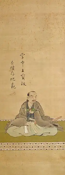 Marume Nagayoshi (丸目 長恵, 1540–1629) was a retainer of the Sagara clan in the Sengoku period and a swordsman in the early Edo period.[1] He was considered one of the best pupils of Kamiizumi Nobutsuna, and went on to found the Taisha ryū school.[1] He was sometimes known as Kurandonosuke and also as Ishimi Mamoru, but was best known as Marume Nagayoshi, which he was called in kōdan. His original name was Fujiwara, and his art name was Tessai. In his later years he shaved his head and went by the name of Ishimi Nyūdō Tessai.