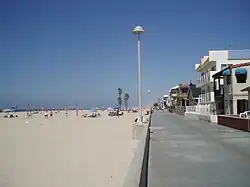 The path continues south through Playa Del Rey to Dockweiler State Beach (which abuts Los Angeles International Airport and the city of El Segundo), "which is wide, clean, sandy and mostly pleasant".[9]
