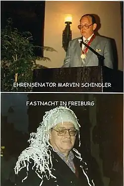 Schindler's leadership of Wayne State's Junior Year in Freiburg and Junior Year in Munich study-abroad programs (he served as director of both from 1975 to 1993) earned him the Bundesverdienstkreuz, Erster Klasse, Germany's highest civilian honor. He twice served as resident director of the Junior Year in Freiburg program, established and run in conjunction with the Albert-Ludwigs-Universitaet, and lived with his family in Freiburg, in the heart of the Black Forest, during the academic years 1983-84 and 1987–88. The Universitaet honored him twice: in 1982, with its silver medallion, and in 1985, with the designation of University Senator.