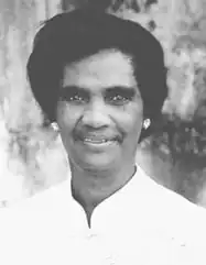 Charles served as a member of the Moravian Provincial Synod meeting, held in Antigua, as part of the St. Kitts delegation in 1969.[5] and briefly taught at the George Moody Stuart Memorial School at the sugar factory, located in Golden Rock, Basseterre.[1] Then in 1971, as the first woman candidate in St. Kitts and Nevis, Charles ran for election on the ticket of the People’s Action Movement.[6] She didn't win and soon moved to the Virgin Islands. Charles taught in Tortola, British Virgin Islands, for 18 months[1] and then moved to Saint Croix, U.S. Virgin Islands, where she continued to teach. In 1975,[5] she married Valdemar Henrique George (1910–2000) and they made their home in Christiansted.[7] George retired from teaching after 53 years in 1978[4] and the following year, she was made a life-time member of the Caribbean Union of Teachers. In recognition of her many years of service to education, George was honoured by Queen Elizabeth II with the Order of the British Empire in the New Year’s Honours for 1985.[5] The following year, a hospital in Molyneux was completed which was named in her honour as the Mary Charles Hospital.[8][9]