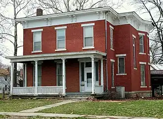 The house is a brick structure in a vernacular Italianate style. It is composed of a two-story main block that is three bays wide, and a projecting full-sized projection with a polygonal bay on the north side. The whole structure is built on a limestone foundation. The house features shallow hipped roofs; wide, bracketed eaves; brick friezes that are painted white; and two wooden verandas.[2]