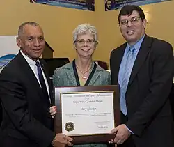 ![]() Mary Glackin receives NASA medal from Charlie Bolden and Chris Scolese. | |