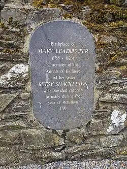 Mary Leadbeater (/ˈlɛdˌbɛtər/; December 1758 – 27 June 1826) was an Irish Quaker author and diarist who lived most of her life in the planned Quaker settlement of Ballitore, County Kildare. She wrote and published extensively on both secular and religious topics ranging from translation, poetry, letters, children's literature and biography.[1] Her accounts of the Irish Rebellion of 1798 provide an insight into the effects of the Rebellion on the community in Ballitore.