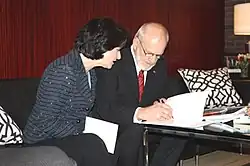 She received an eighty-percent pay increase for her job at North Carolina State University.[6] The raise she received was $90,300- a much larger raise than that received by other academic administrators, providing her an annual salary of $170,000.[21][22][23] She was criticized by the North Carolina State Employees Association members, who claimed she was given preferential treatment as the governor's wife.[6] The governor responded by saying that people were making an issue of Easley's raise because of her gender.[6] In June 2009, the university's board of trustees voted to terminate Easley's contract after newly released documents indicating that her husband was involved in her hiring.[24][25][26] She began a formal grievance process following her termination.[27] Easley agreed not to sue the university for severing its contract with her.[28] In return, she received an additional $40,000 in annual pension benefits.[28][29]