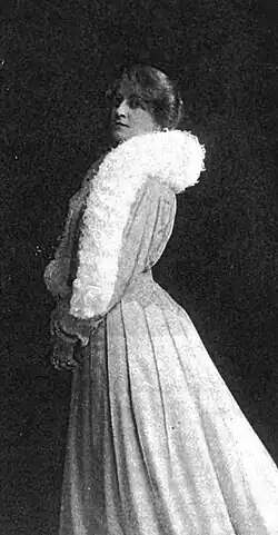 From 1891 to 1895 her art received awards at the California State Fair. She exhibited at the World’s Columbian Exposition in Chicago in 1893. After the death of her first husband, Seymour Chapin Davison, in 1897 she became, under the sponsorship of Ambrose Bierce, a staff illustrator of portrait sketches at The San Francisco Examiner.[3] In 1899 Mary Williams Davison moved to New York City and established a studio-residence on West Twenty-Fourth Street. She was hired by Joseph Pulitzer to publish her caricature drawings and interviews of celebrities under the pseudonym “Kate Carew” for his Sunday World and Evening World, divisions of the New York World. In 1901 she married the Australian journalist and playwright Henry Kellett Chambers. In September 1910 she gave birth to a son, Colin Chambers, and the following year divorced her husband for his infidelities with the Mexican writer Maria Cristina Mena.[3]