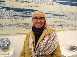 Mary Zicafoose is an American textile artist, weaver, and teacher who specializes in ikat, an ancient technique in which threads are wrapped, tied and resist-dyed before weaving. Zicafoose is the author of Ikat: The Essential Handbook to Weaving Resist-Dyed Cloth (2020).[2] Her works are part of private and public collections, including at least 16 embassies around the world as part of the U.S. Art in Embassies Program.[3][4]