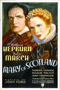 Mary of Scotland is a 1936 American historical drama film starring Katharine Hepburn as Mary, Queen of Scots.[3][4] Directed by John Ford, it is an adaptation of the 1933 Maxwell Anderson play, with Fredric March reprising the role of Bothwell, which he also performed on stage during the run of play.[5] The screenplay was written by Dudley Nichols. Ginger Rogers wanted to play this role and made a screen test, but RKO rejected her request to be cast in the part[6] feeling that the role was not suitable to her image.